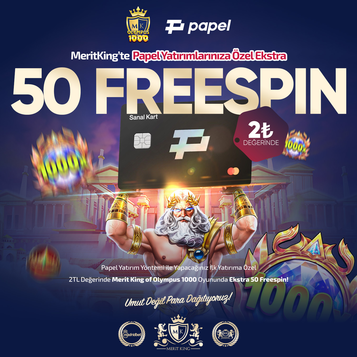 Merit King Olympus 1000   oyununda   ₺9.000   karşılığı,   ₺112.500.000   kazandı.