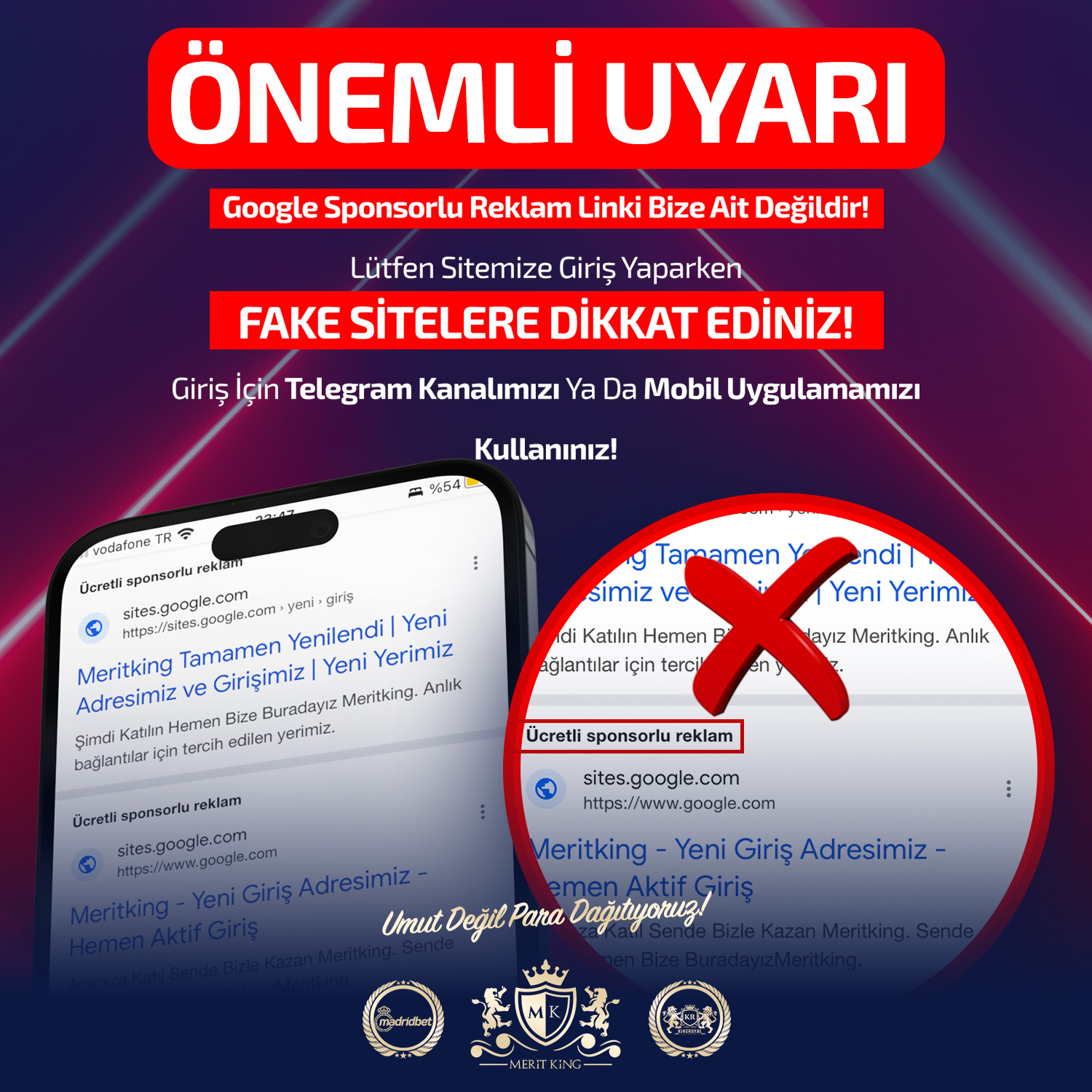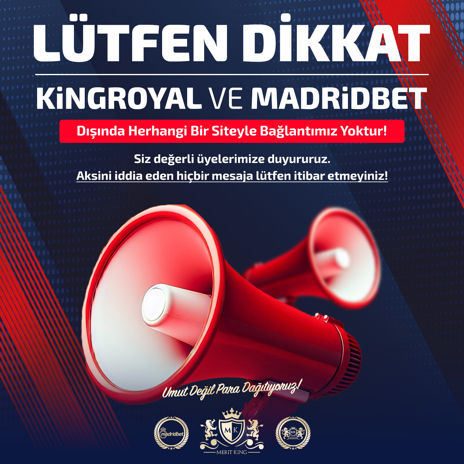 Güncel adreslerimiz belirli aralıklarla ve adres sonundaki ardışık rakamlarla güncellenir. Güncel linke ulaşmak için "MRTKNG" yazıp "4609"’a SMS gönderebilir, WhatsApp veya Telegram üzerinden bize ulaşabilir ya da sosyal medya hesaplarımızı takip edebilirsiniz. Yeni adres değişiklikleri yapıldığı zaman eski kullanıcı bilgileriniz ile sisteme giriş yapabilirsiniz.